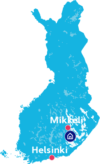 Juuri täysin uudistettu Villa Eveliina sijaitsee Mikkelin Suomenniemellä, Etelä-Savon ja Etelä-Karjalan rajamailla. Helsingistä huvilalle ajaa alle kolmessa tunnissa ja Mikkelistä matkaa on noin 60 kilometriä.